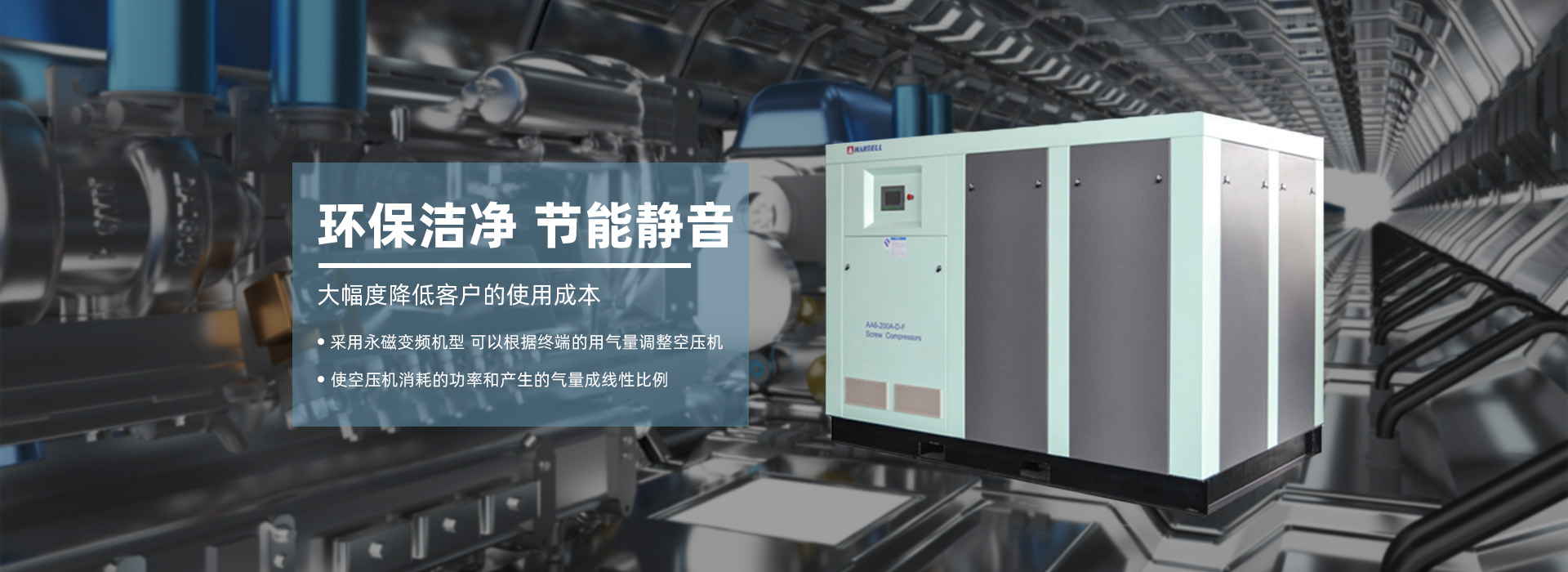 一體式集成,安裝方便: 1、免客戶自配儲氣罐、冷干機、過濾器的麻煩,免接管安裝的麻煩,免多家供應商提供服務的麻煩。 2、永磁變頻螺桿空壓機,確保工作壓力始終穩(wěn)定。 3、采用高效板式冷凍式干燥機和4級高效精密過濾器,確保獲得純凈的壓縮空氣,壓力露點低至2-8℃,后處理采用不銹鋼管路,避免產生二次污染。 4、主油管采用柔性管路連接,有效的減振降噪,運行噪音<70dB,用永磁變頻可以更好的控制油溫,避免乳化后處理集 中式排水,保持客戶現(xiàn)場清潔。